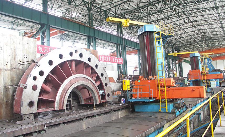 公司擁有廠房面積20萬平方米,各類設備2000余臺。主要設備有:數(shù)控內(nèi)外工作臺雙柱15m立車、16m重型數(shù)控臥車, Φ220數(shù)控雙立柱落地鏜床、 Φ160落地鏜床、12m臥車、8m重型龍門刨床、DK7 750數(shù)控線切割機、VB825數(shù)控銑床、20T、10T銑槽機、1000T油壓機、800T沖床、100T/20T行車、大電機試驗站、風電試驗中心、汽車電機試驗中心等,具有強大的制造能力 。